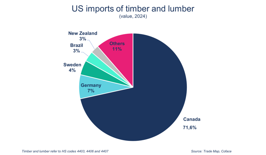 Even among import sources, few changes are expected. Supplying more than 70% of US imports of raw wood and lumber, Canada is on the front line when it comes to these softwood tariffs. This is especially true since the 10% tariffs are in addition to the countervailing and anti-dumping duties, against a backdrop of increasingly tense trade relations between Ottawa and Washington. However, the impact on Canada needs to be qualified. First, a large portion of Canadian wood exports remain exempt from the 10% tariff thanks to the CUSMA, at least until its renegotiation scheduled for 2026. Furthermore, despite the increase in other taxes applied to Canadian softwood lumber, it retains a clear advantage: in 2024, its import price on the US market was about 50% lower than that of wood from the European Union. The increase in duties will therefore not be enough to erase Canada's competitive advantage.